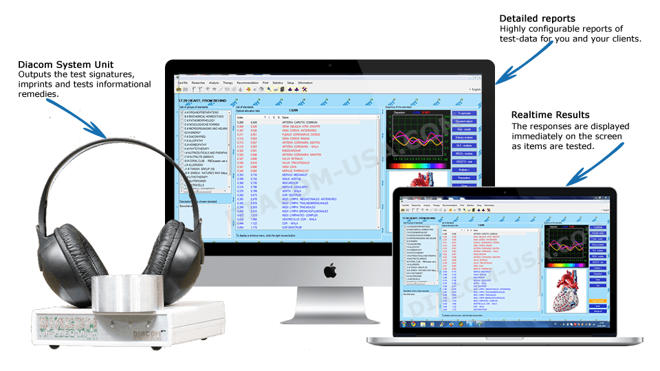 The device measures electromagnetic oscillations from the body’s cells, detecting abnormal patterns that may indicate sensitivity reactions to specific foods.