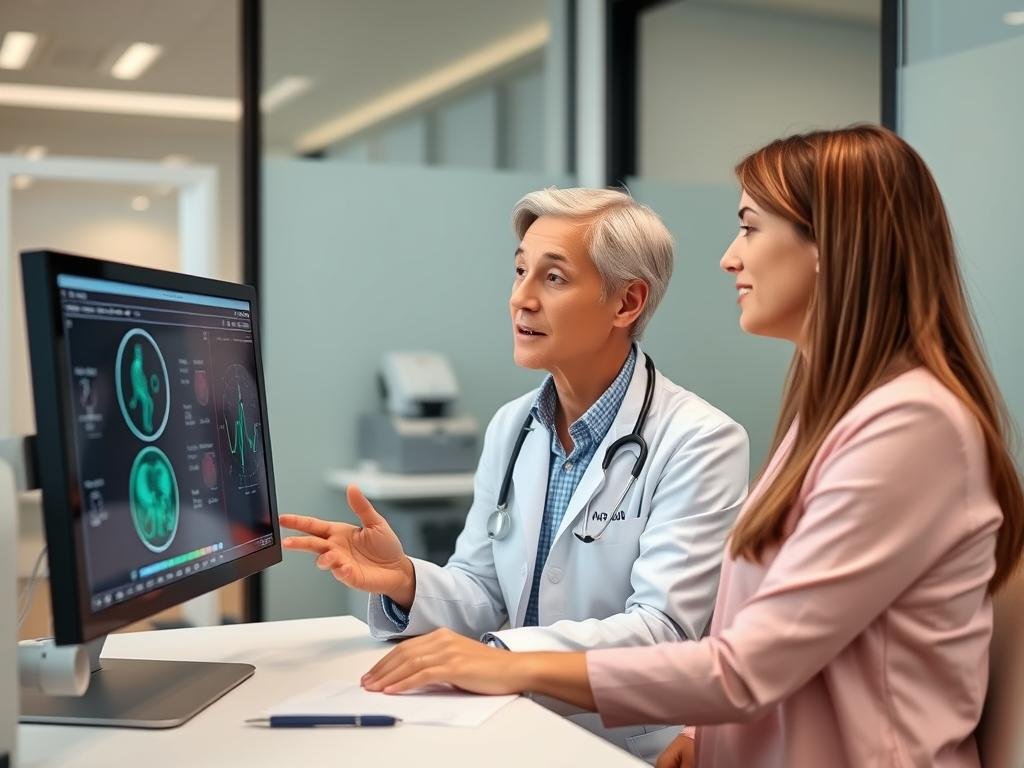 Healthcare professional reviewing Metatron Hunter 4025 NLS results with a patient